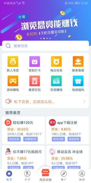 用户完成任务,可获取赏金报酬。还有红包,各种奖励可以拿。