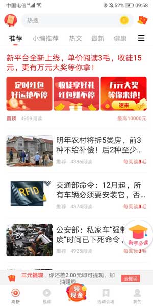 资讯随享,实力公司老平台旗下,登陆送1元,3元就能提现,文章每次点击3毛钱。没有套路,全是真的!在家躺着赚,阅读3毛起,还有定时红包!邀请一个好友18元,还可组团玩,享万元收徒! 看新闻也能赚钱!邀请一个好友18元,秒提现!还有定时红包,独享万元收徒!